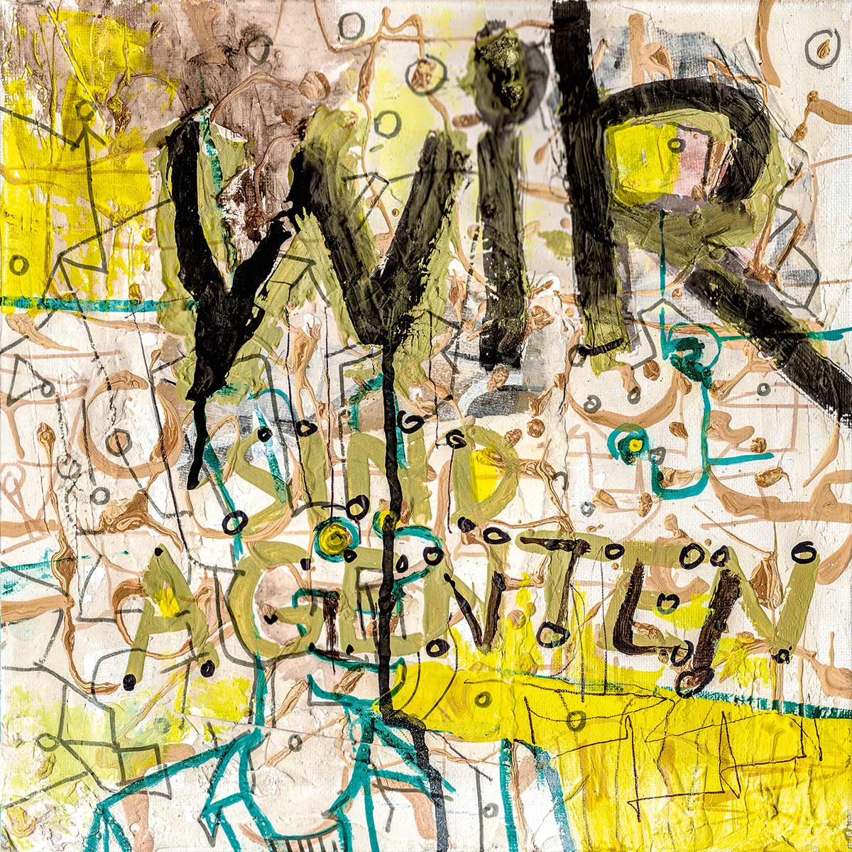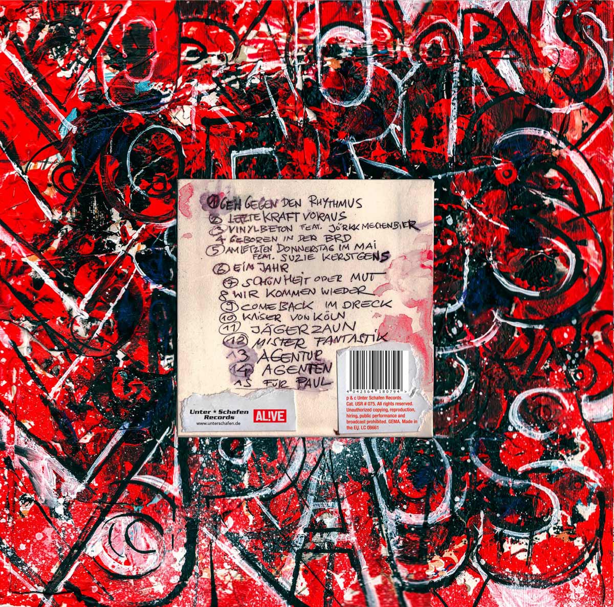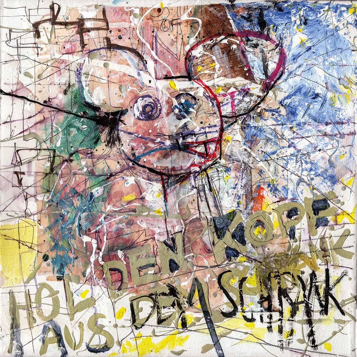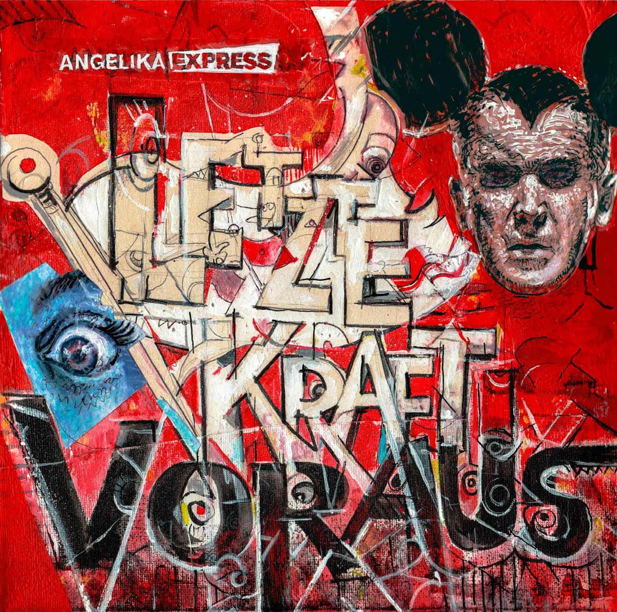 Cover, Booklet, Gatefold: Das komplette Artwork für LETZTE KRAFT VORAUS wurde von Robert in Originalgröße gemalt. Insgesamt 20 Leinwände, 30 x 30 cm.
