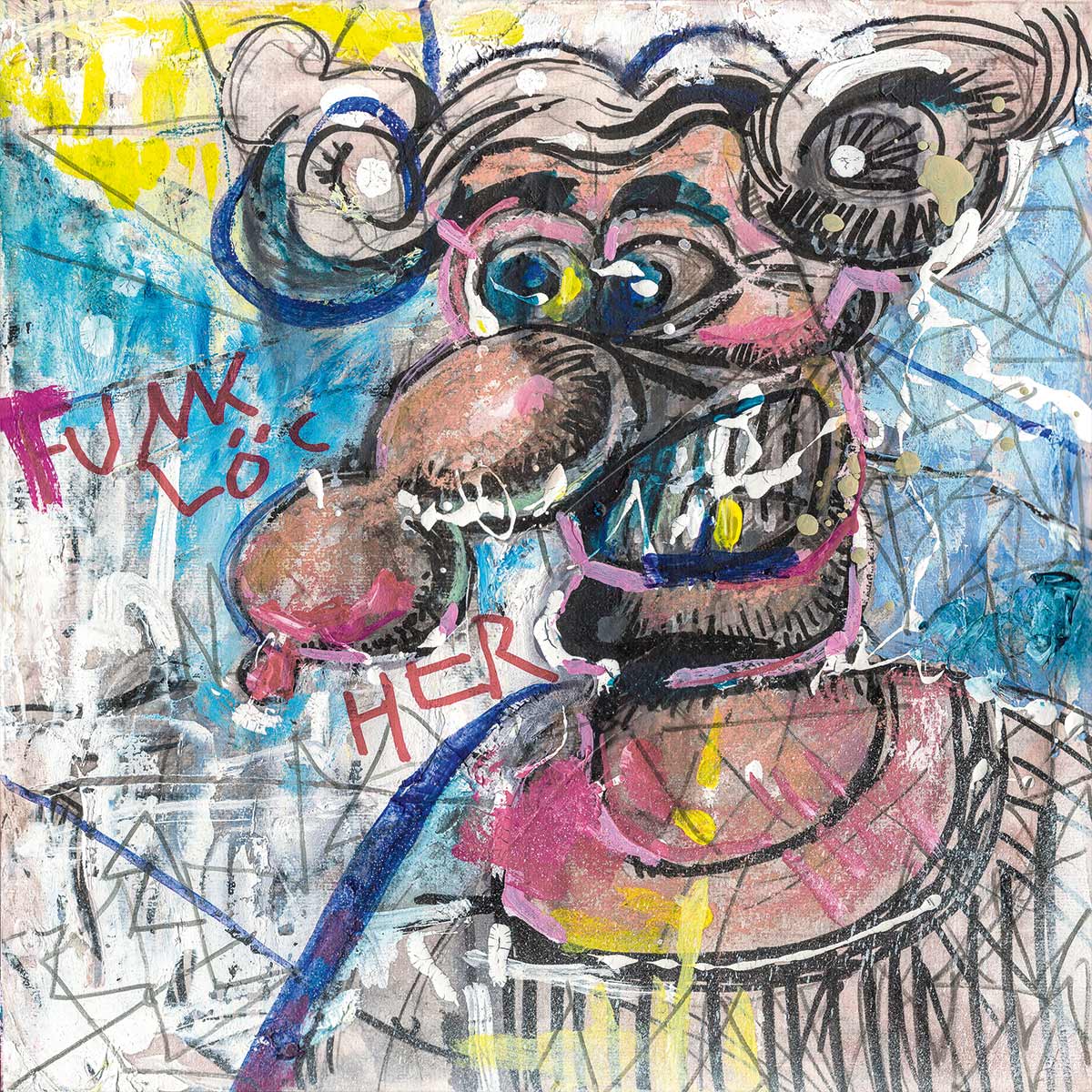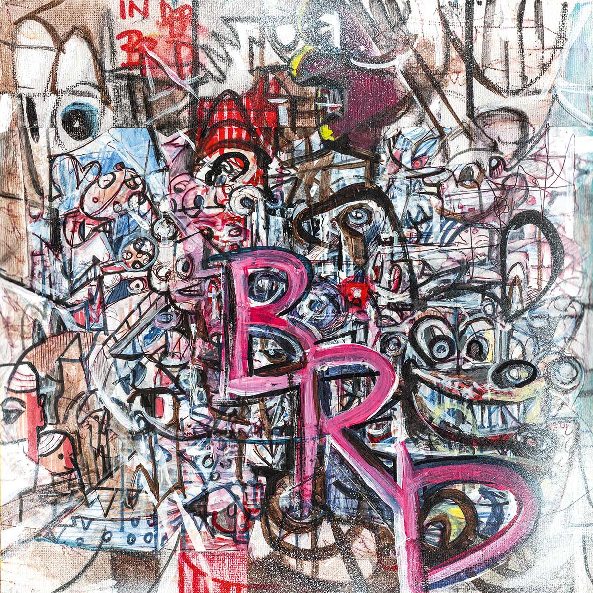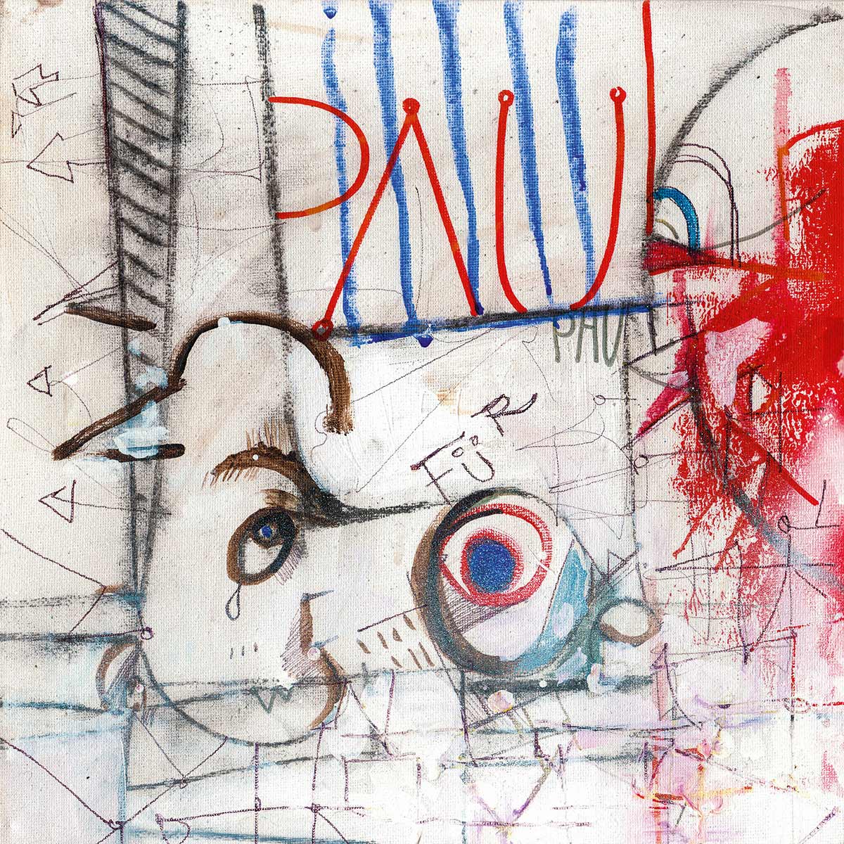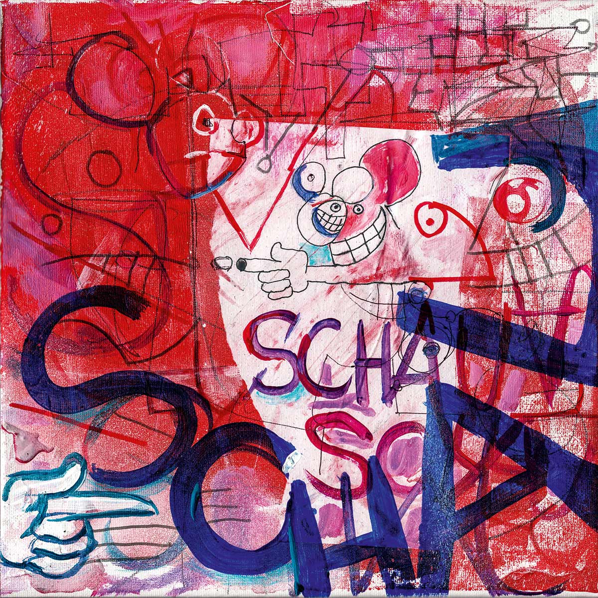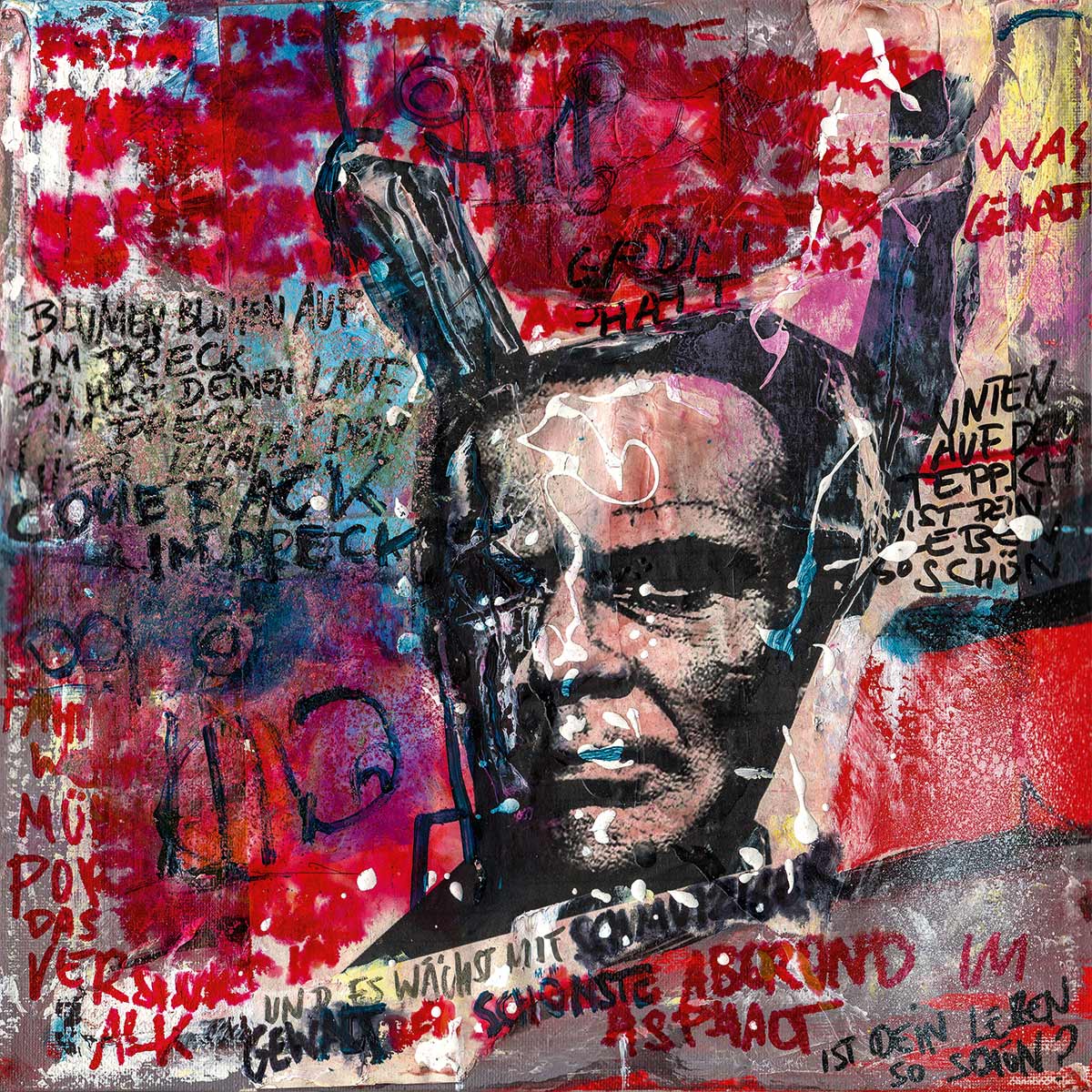 Cover, Booklet, Gatefold: Das komplette Artwork für LETZTE KRAFT VORAUS wurde von Robert in Originalgröße gemalt. Insgesamt 20 Leinwände, 30 x 30 cm.