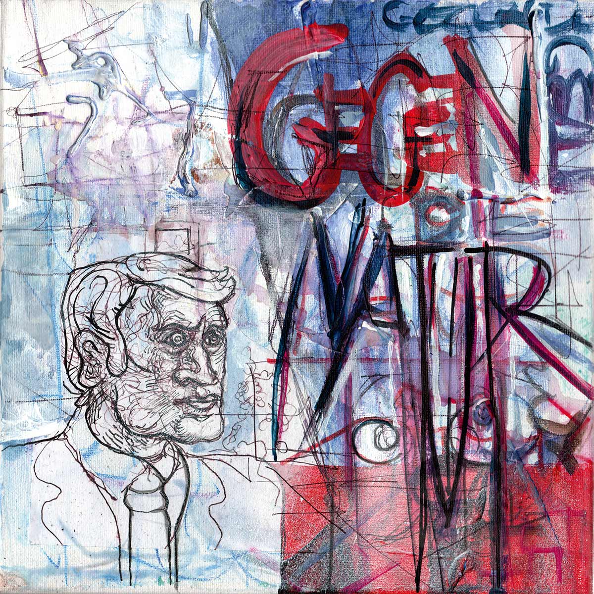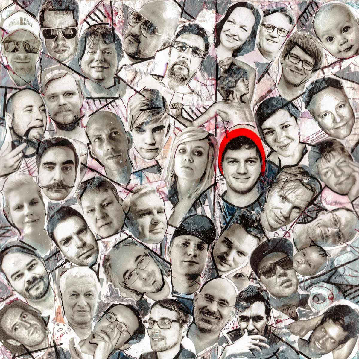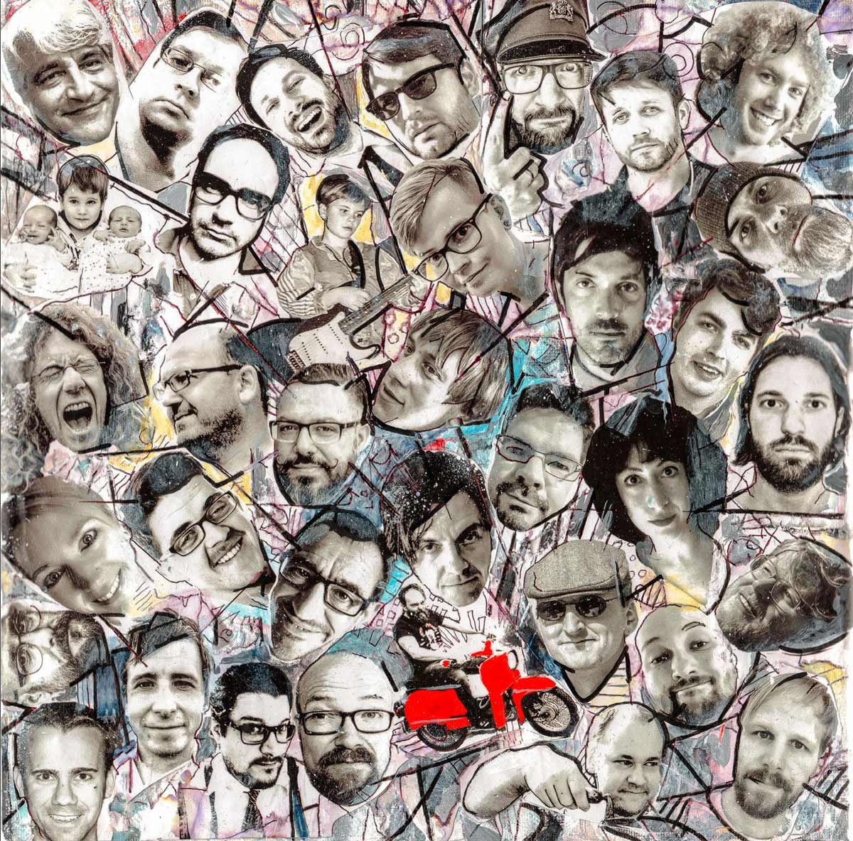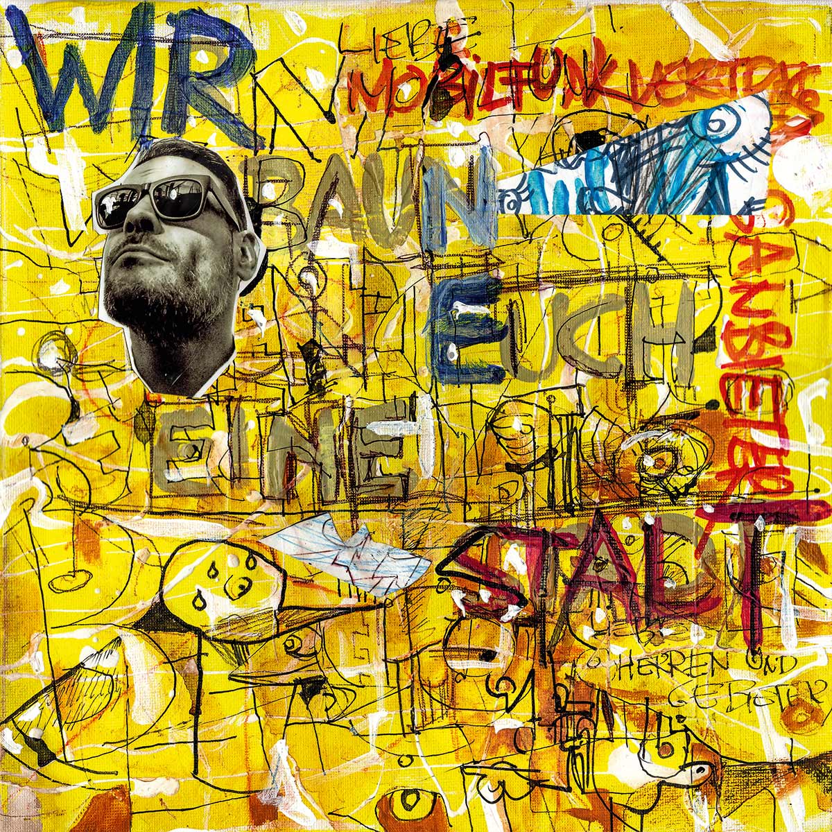 Cover, Booklet, Gatefold: Das komplette Artwork für LETZTE KRAFT VORAUS wurde von Robert in Originalgröße gemalt. Insgesamt 20 Leinwände, 30 x 30 cm.
