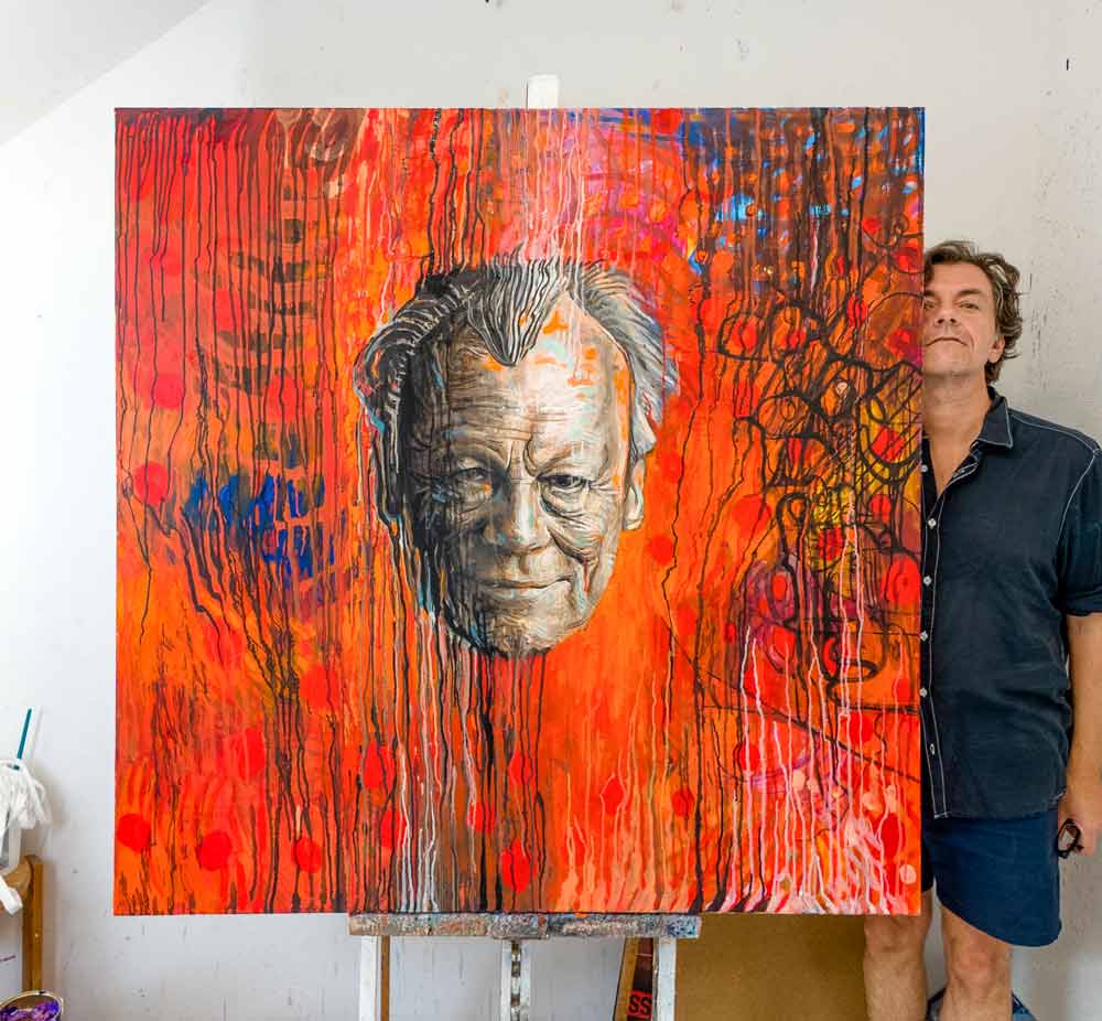 Das Covergemälde mit Willy Brandt ist auch so ein Echo prägender Jahre. Eine Zeit krasser Gesichter, abgerockt und allumfassend. Diese Aura wollte ich auf der Platte haben – als Spiegel, in dem wir vielleicht unsere heutige Haltung besser erkennen können.