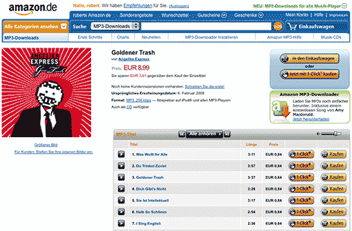 Unser Album „Goldener Trash“ ist dort für 8,99 Euro zu haben, die einzelnen Songs gibt’s für 84 Cent.